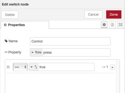 The flow is pretty simple due to all the functions of the hue switch are programmed into the function node.